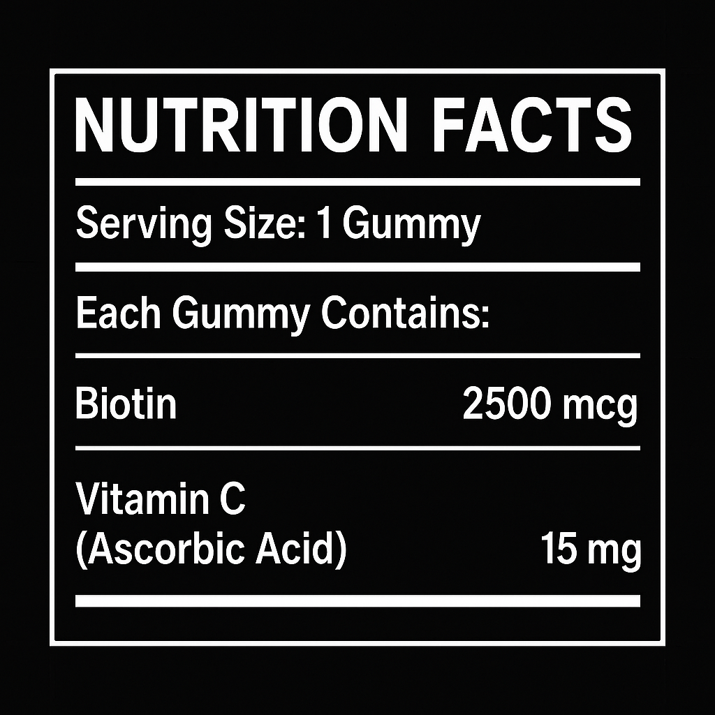 Each gummy is specially crafted with Biotin, a key B-vitamin that helps strengthen hair, promote radiant skin, and support nail growth from within.